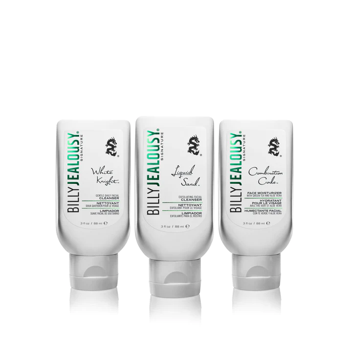 Face3Some features our unique, 3-step skin care system in airline-approved 3oz bottles. Give your skin the attention it needs with this easy to use, 3 step kit designed to unclog pores, refine skin texture, and prevent signs of aging, even for sensitive skin. The kit includes White Knight daily facial cleanser, LiquidSand exfoliator, and Combination Code moisturizer. Together, this trio leaves your skin feeling clean (never tight!), balanced, and deeply nourished.