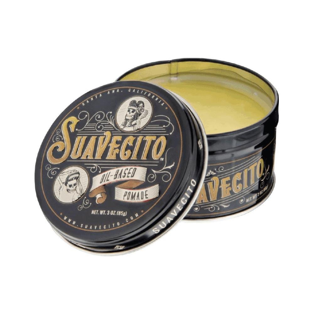 It’s finally here. Suavecito Oil Based Pomade has been long-requested by those who want a pliable, but long-lasting hold with an old school feel. Three simple ingredients expertly blended together to create a pomade that will help you achieve your perfect look. This Oil Based Pomade provides a healthy shine and a controlled hold on any hair type. Use it on even the most unruly, thick hair to achieve your desired style – from a smooth slickback to a perfect pomp. We already know what your next question is, and yes, this has our original Suavecito scent.